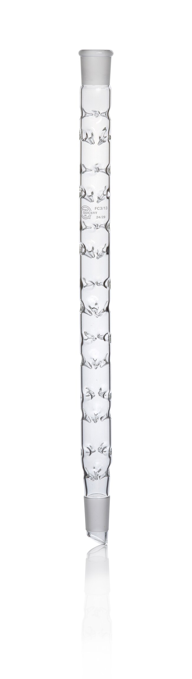 Popular and easy-to-use fractionating column using a combination of horizontal and angled indentations. Quickfit™ Borosilicate Glass Vigreux Fractionating Column has a significantly increased column surface area for greater efficiency.
